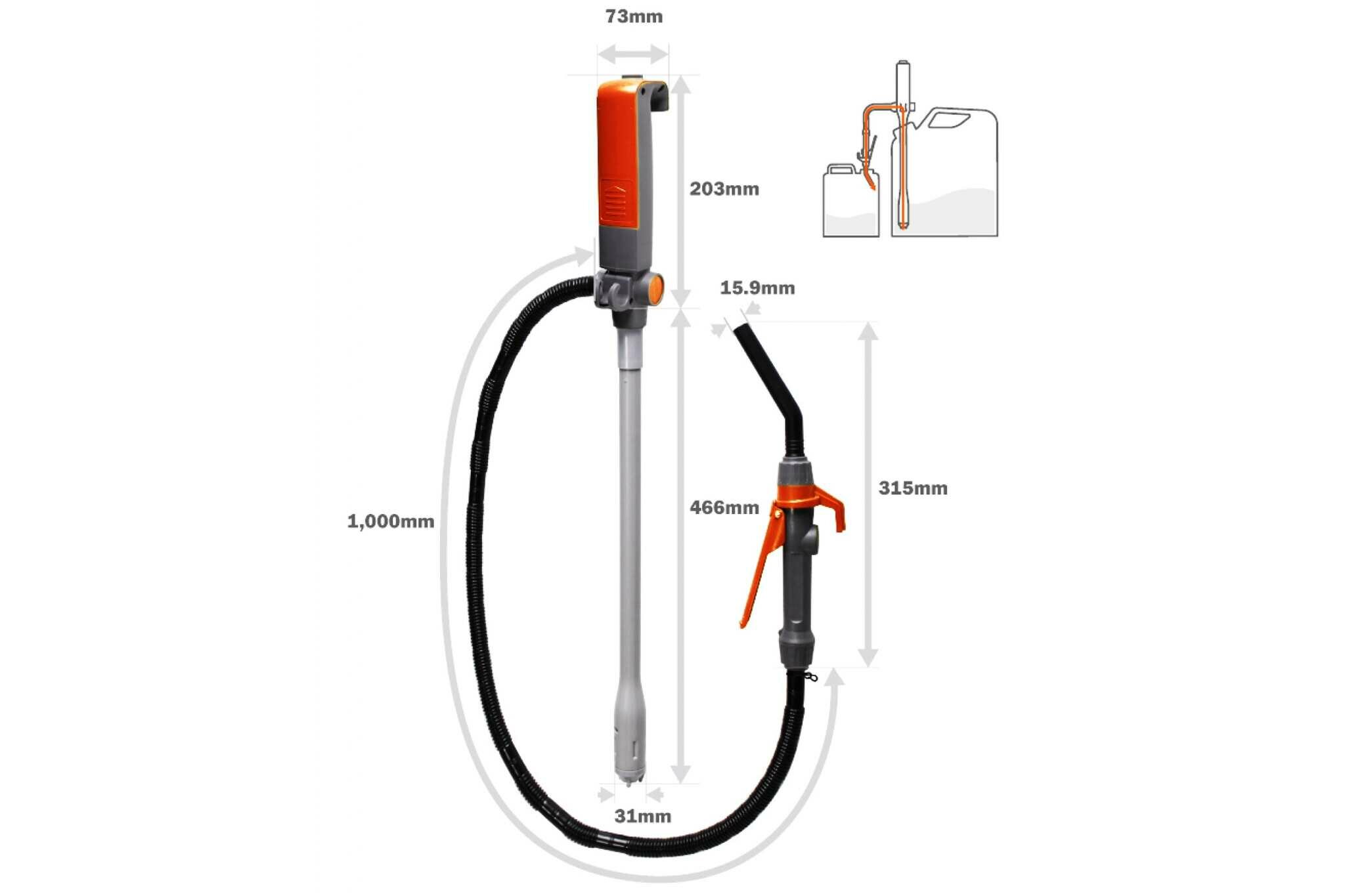 Объём перекачиваемой жидкости 3000л. Заправочный пистолет, фильтр и насадки.