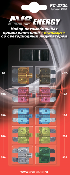 Предохранители с диодной индикацией AVS FC-272L (стандарт набор 10 шт.) (43736)