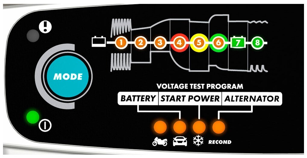 СТЕК MXS 5.0 TEST & CHARGE является автоматическим 8-этапным зарядным устройством с возможностью выбора зарядного тока 0.8A или 5A для аккумуляторов 12-В емкостью от 1.2 до 110 Ач (в режиме зарядки) и до 160 Ач (в режиме профилактической зарядки/обслуживания).
