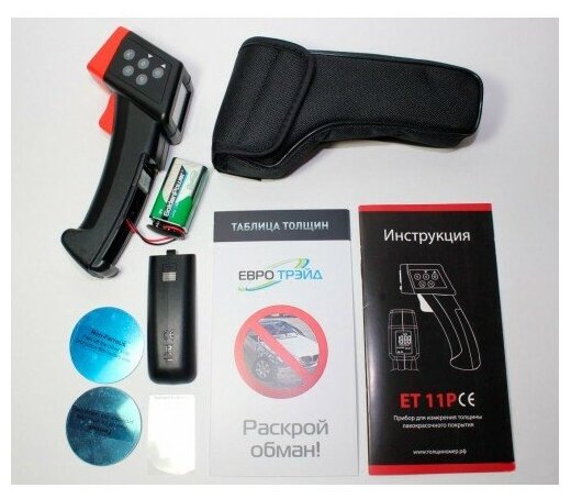 Толщиномер предназначен для точного и быстрого измерения толщины слоя лака и краски на кузове автотранспорта, что позволяет определить был ли автомобиль в ремонте или нет. Модель подходит для работы со сталью, алюминием, бронзой, чугуном, латунью, медью, оловом и другими сплавами, а так же с черными металлами. Измерения производятся за 1 секунду. Прибор оснащен автоматической системой отключения (после 30 сек. бездействия), ЖК-дисплеем с подсветкой, а так же индикатором батареи. Благодаря удобному расположению отсека для элементов питания, замена батарей производится легко и быстро. Эргономичная рукоятка обеспечивает дополнительное удобство при использовании прибора.