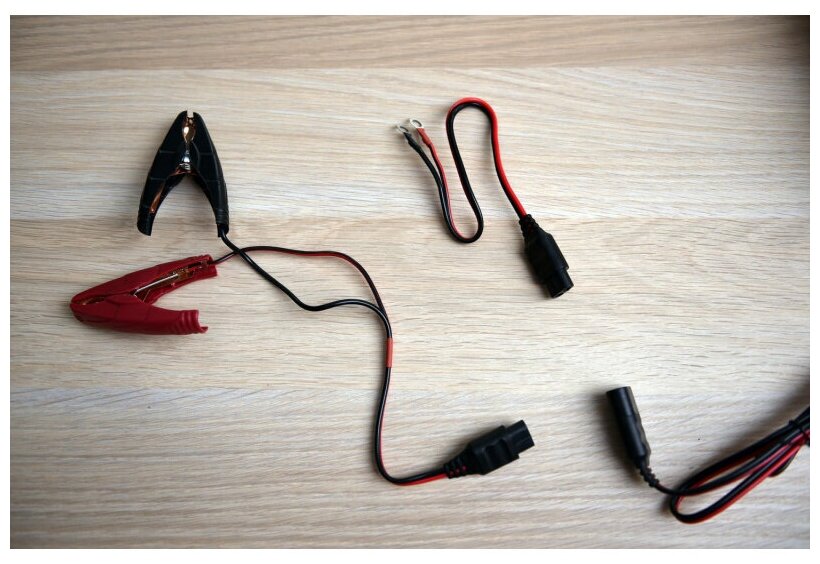 В комплекте Smart Power SP-8N четыре быстрозаменяемых коннектора: с «крокодилами», клеммами под болты, со штекером прикуривателя, а также с ответной (под прикуриватель) автомобильной розеткой.