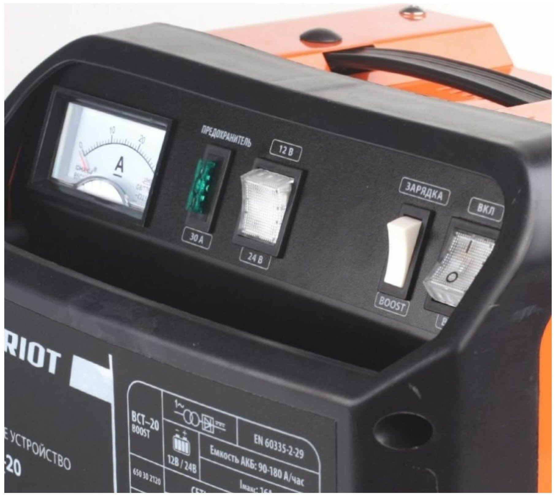 Устройство для бытового полупрофессионального или профессионального использования. Предназначено для зарядки свинцовых, кислотных аккумуляторов напряжением 12В и 24В. Ускоренный режим зарядки с повышенным током. Устройство высокого качества, удобно в использовании, оснащено переключателем напряжения тока, амперметром, защитой от перегрузки, неправильной полярности, короткого замыкания. Отсек для хранения проводов.