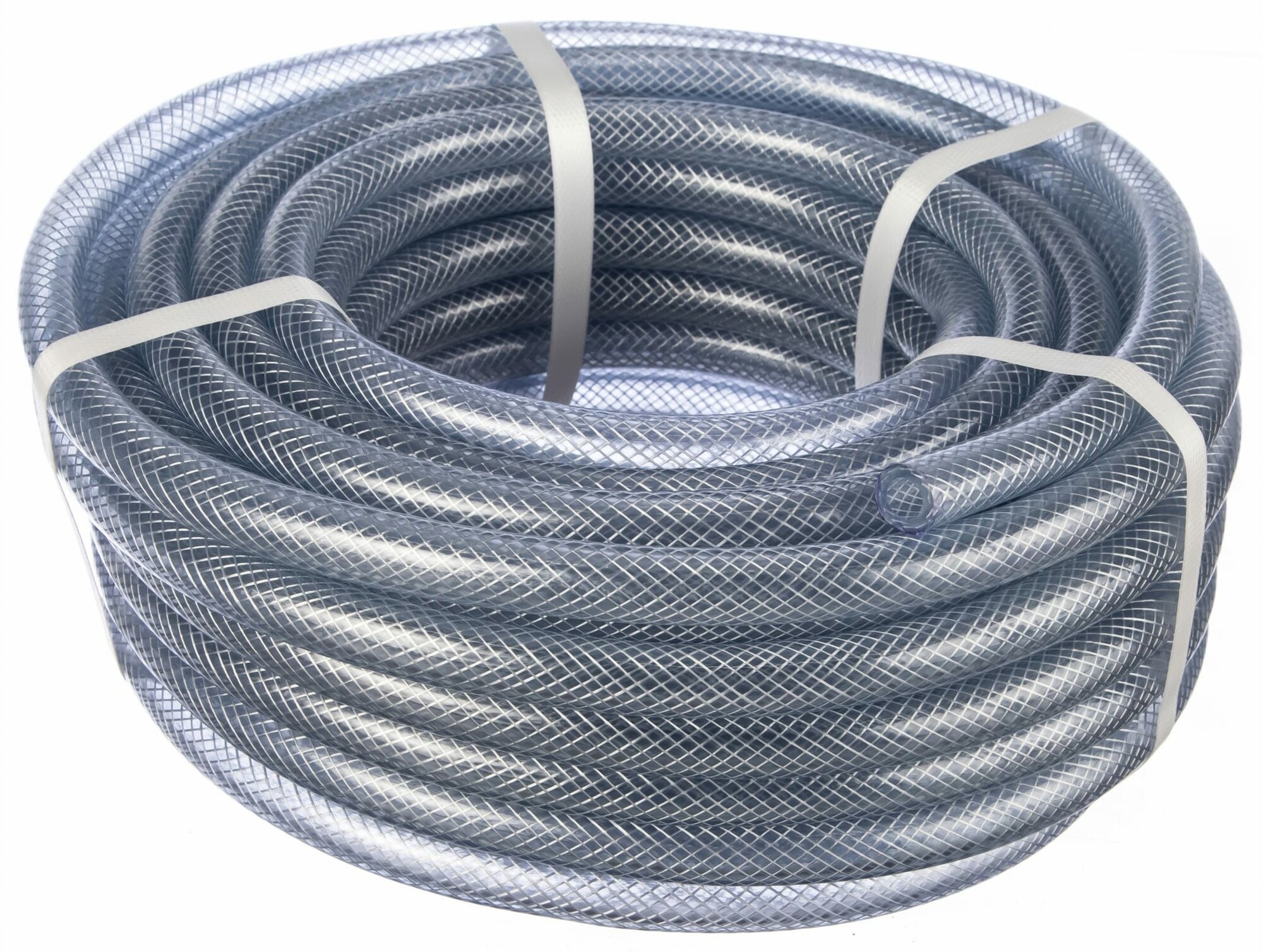 Трехслойный прозрачный шланг из ПВХ, армированный полиэфирными нитями. Внутренняя и наружная поверхности гладкие. Устойчив к ультрафиолетовому облучению и воздействию большого числа химических соединений. Эластичный, легкий, удобный в применении. Для передачи сжатого воздуха и различных жидкостей.