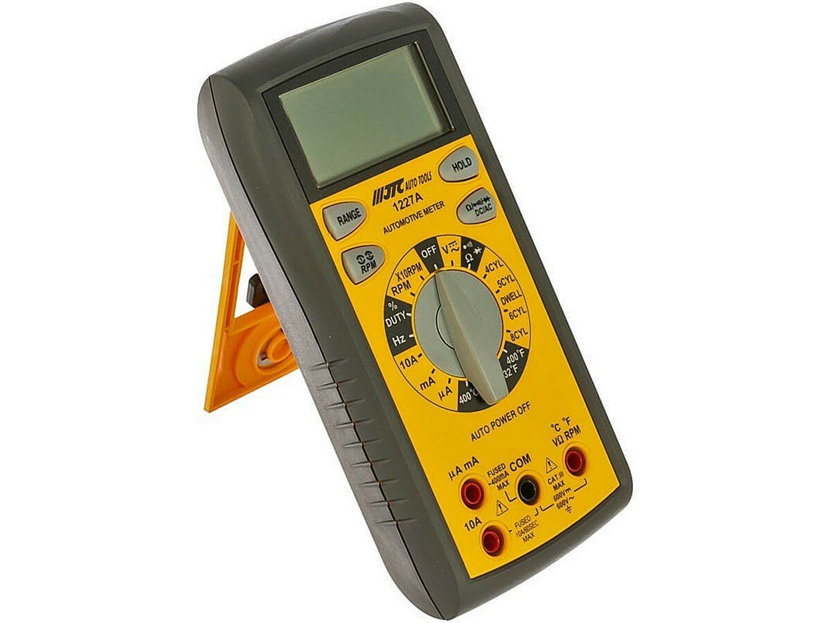 Мультиметр автомобильный JTC применяется для тестирования электрооборудования автомобиля. Более 20 измеряемых параметров. Имеет защиту от перегрузки на всех уровнях. Выполняет тест диодов, тестирование непрерывности электрической цепи, имеет функцию сохранения данных.