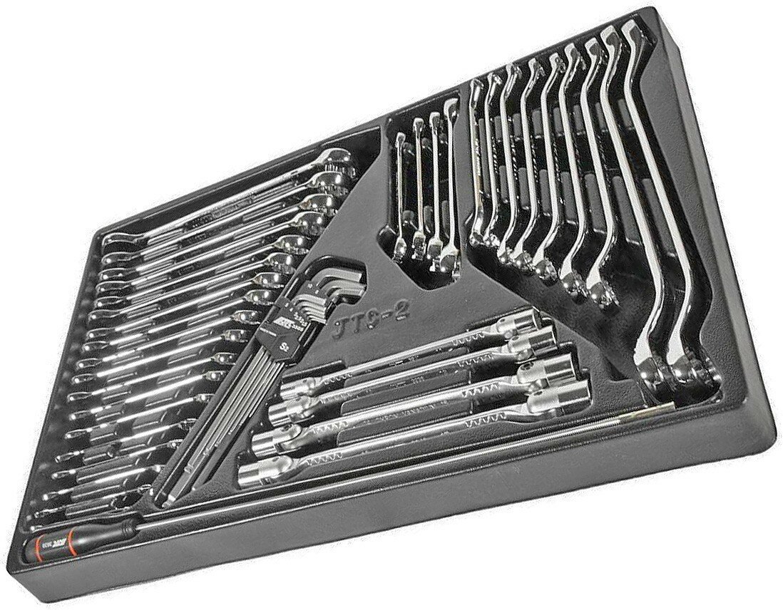 Набор инструментов для тележки инструментальной JTC JTC- (вторая секция) состоит из 45 предметов и предназначен для обслуживания и ремонта легковых и грузовых автомобилей, а также машин и механизмов в промышленности, сельском хозяйстве и других отраслях. Инструменты изготовлены из высококачественной хромованадиевой стали и имеют рукоятки для надёжного удержания и комфорта во время работы.ПреимуществаИнструменты изготовлены из высокопрочных материалов, что гарантирует их долговечность и надёжностьХромированное покрытие не только придает инструментам эстетичный вид, но и защищает их от коррозииУдобная организация инструментов в секциях тележки позволяет быстро и легко найти нужный инструмент, что экономит время и повышает эффективность работы