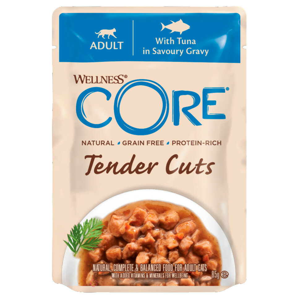 Влажный корм для кошек Wellness Core Tender Cuts Нежные Кусочки Тунца в Пикантном Соусе 0085 кг