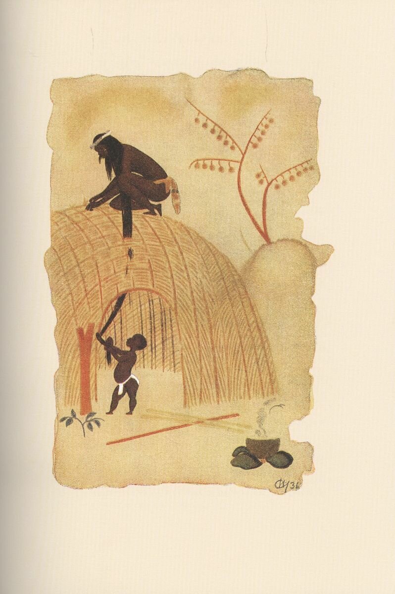 Блистательный цикл иллюстраций к "Сказкам зулу" выдающегося ленинградского художника Н. А. Ушина (1898-1942) воспроизводится впервые с 1937 г.
