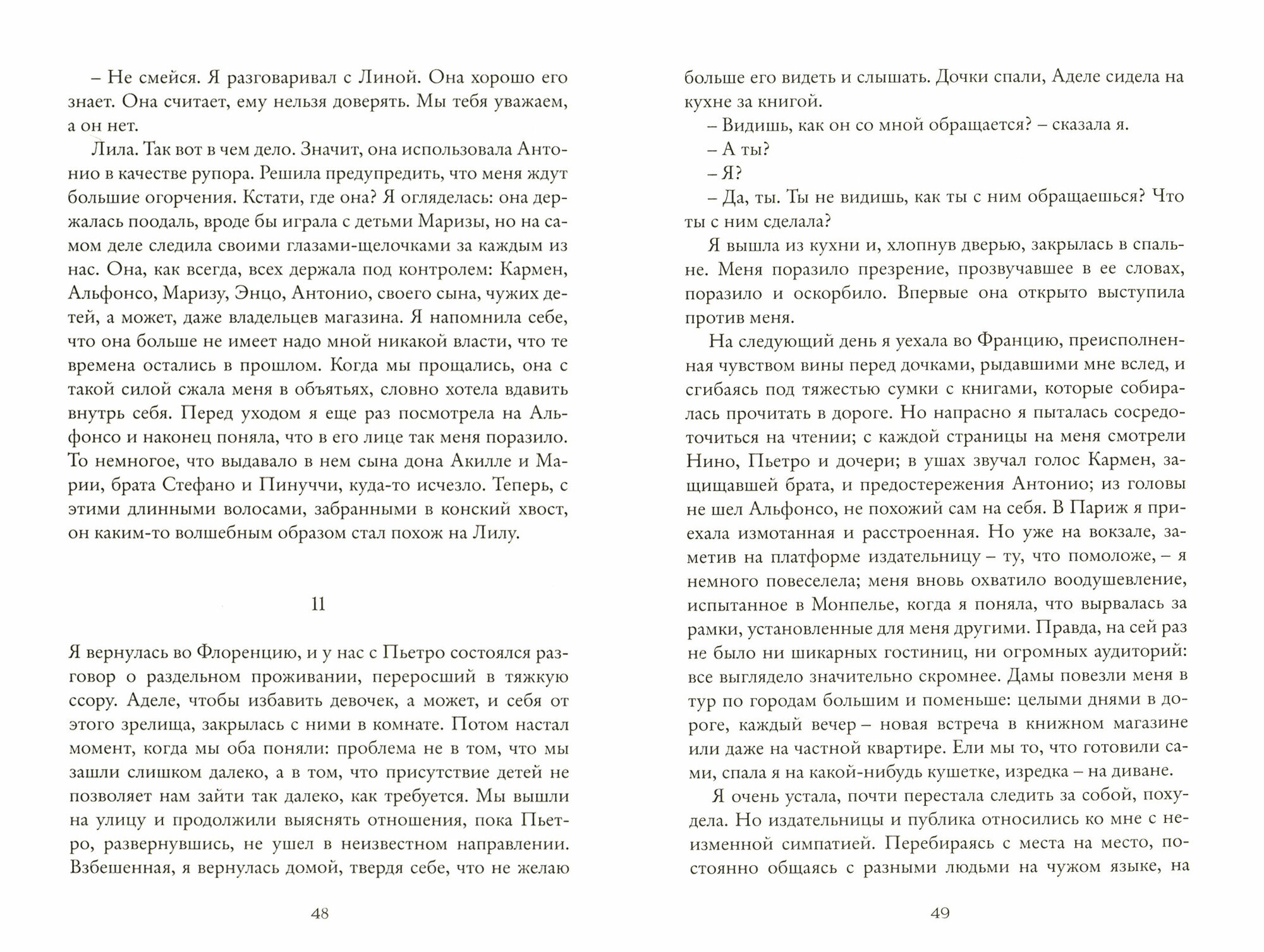 Последний роман тетралогии такой же прекрасный и сбивающий с ног, как и предыдущие три. Последняя книга не дала мне ответы на все вопросы, которые возникли по мере прочтения серии. Но немного открытый финал в данном случае очень уместен. Не было разочарования, скорее была интрига и сожаление, что закончилась история героини, ее подруги и их сложных, непонятных отношений, которые скорее выглядели противостоянием нежели дружбой.
