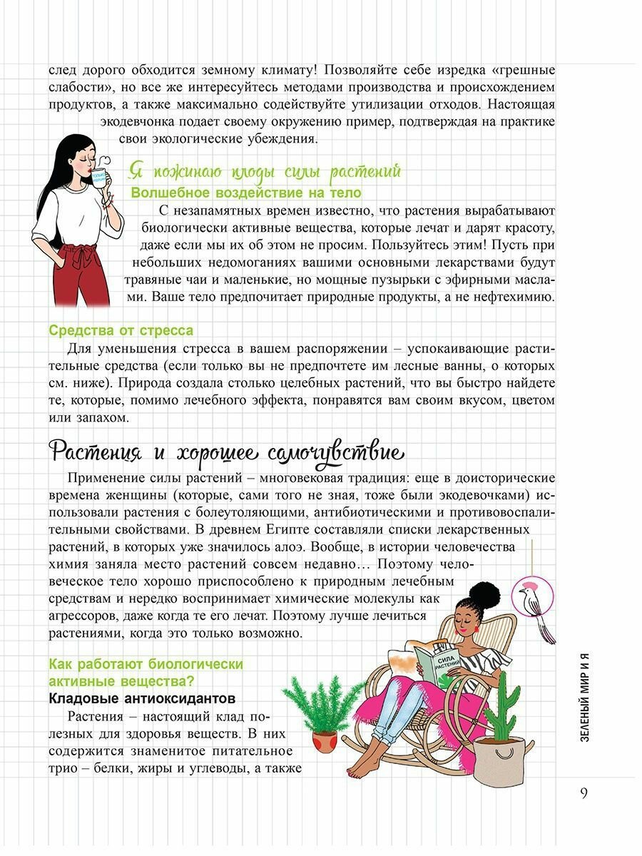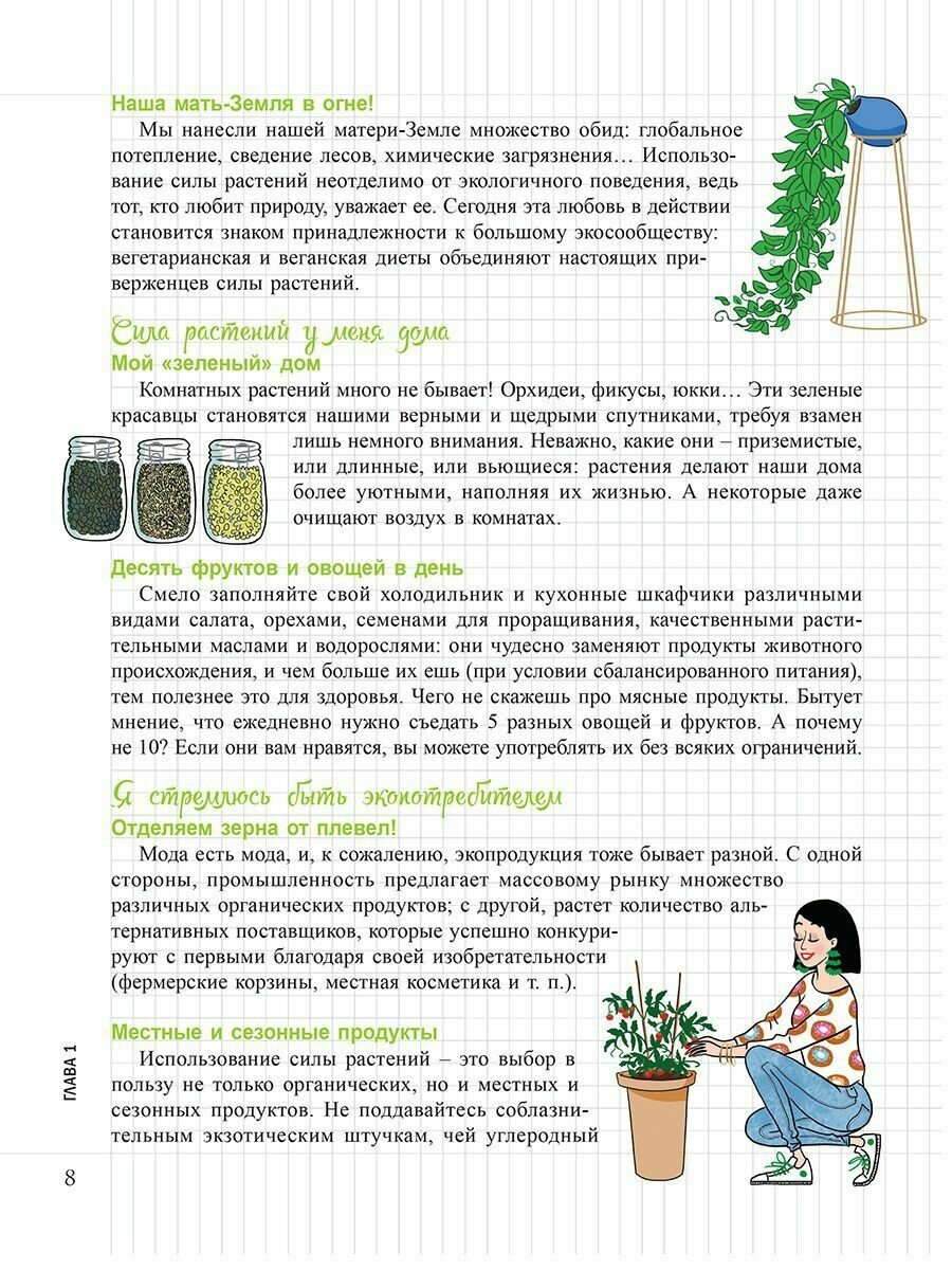Очень любопытная книжечка - по сути, сборник лайфхаков на разные темы, связанные с использованием растений и повышением экологичности жизни. Интересна именно нестандартность этого сборника, хотя, конечно же, многие советы давно не новы. Кратко сказано об очень многом, затронуты темы питания, косметики, фитотерапии, растений в доме и человека среди растений. Многие идеи и советы взяты у реальных людей - интересно узнавать новые имена, при этом даны ссылки на интернет-ресурсы. Некоторые термины я впервые узнала из этого блокнота. Несомненно, стоит прочесть его тем, кому интересен мир растений во всём многообразии.