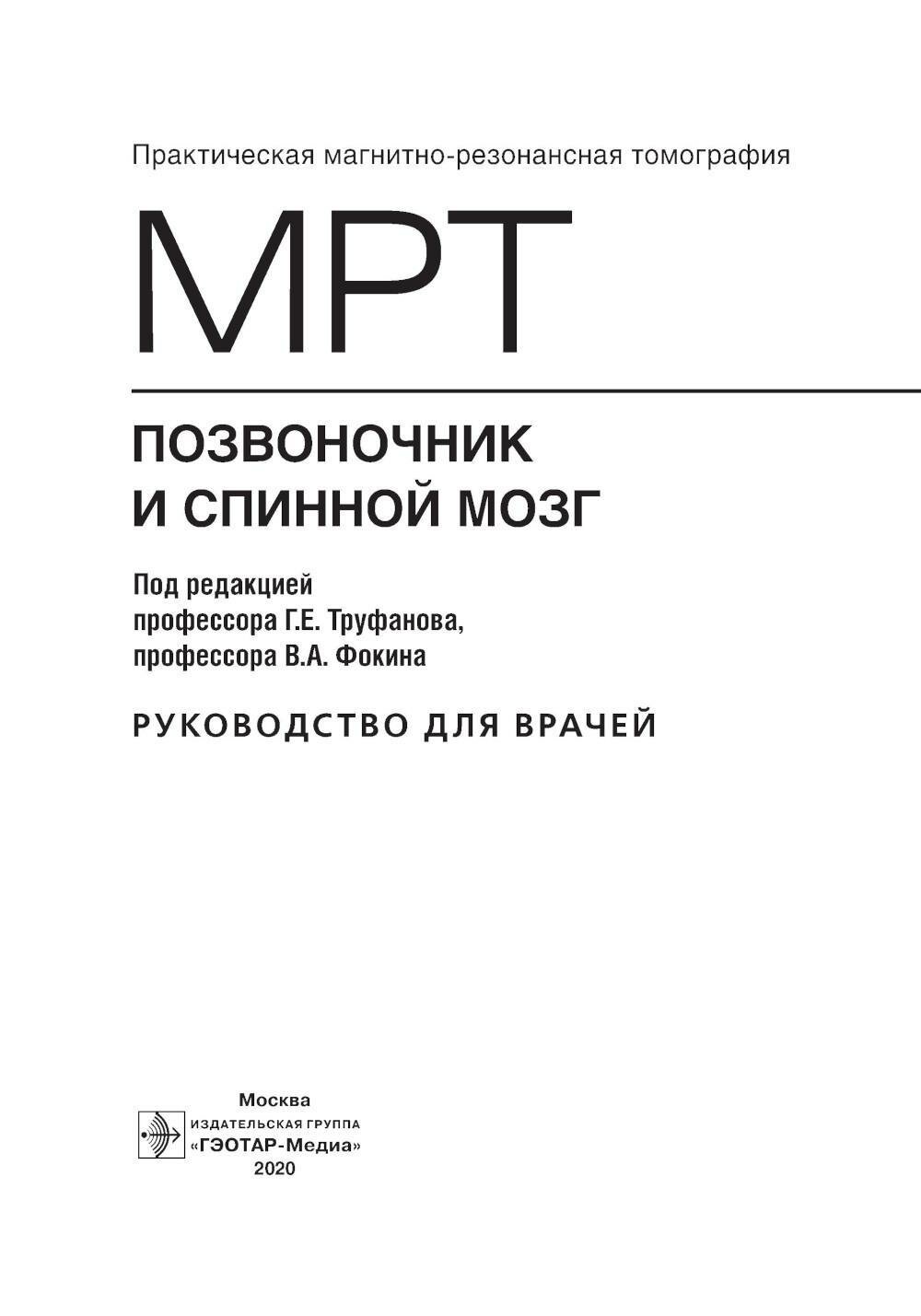 МРТ. Позвоночник и спинной мозг (Труфанов Геннадий Евгеньевич, Фокин Владимир Александрович, Грищенков Александр Сергеевич); ГЭОТАР-Медиа, 2020