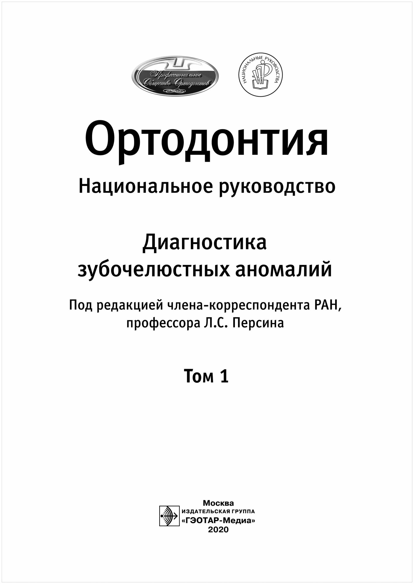 Ортодонтия. Национальное руководство. В 2-х томах. Том 1 (Персин Леонид Семенович; Абрамова Марина Яковлевна; Алимова Александра Вячеславовна); Гэотар-Медиа, 2020