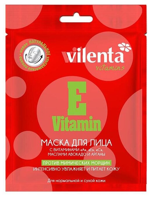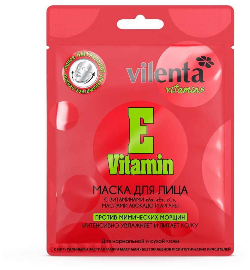 Маска Vilenta (Вилента) E Vitamin для лица против мимических морщин с витаминами А Е С маслами авокадо и арганы 28 г 1 саше NOX-BELLCOW Cosmetics Co Lt CN (831686)