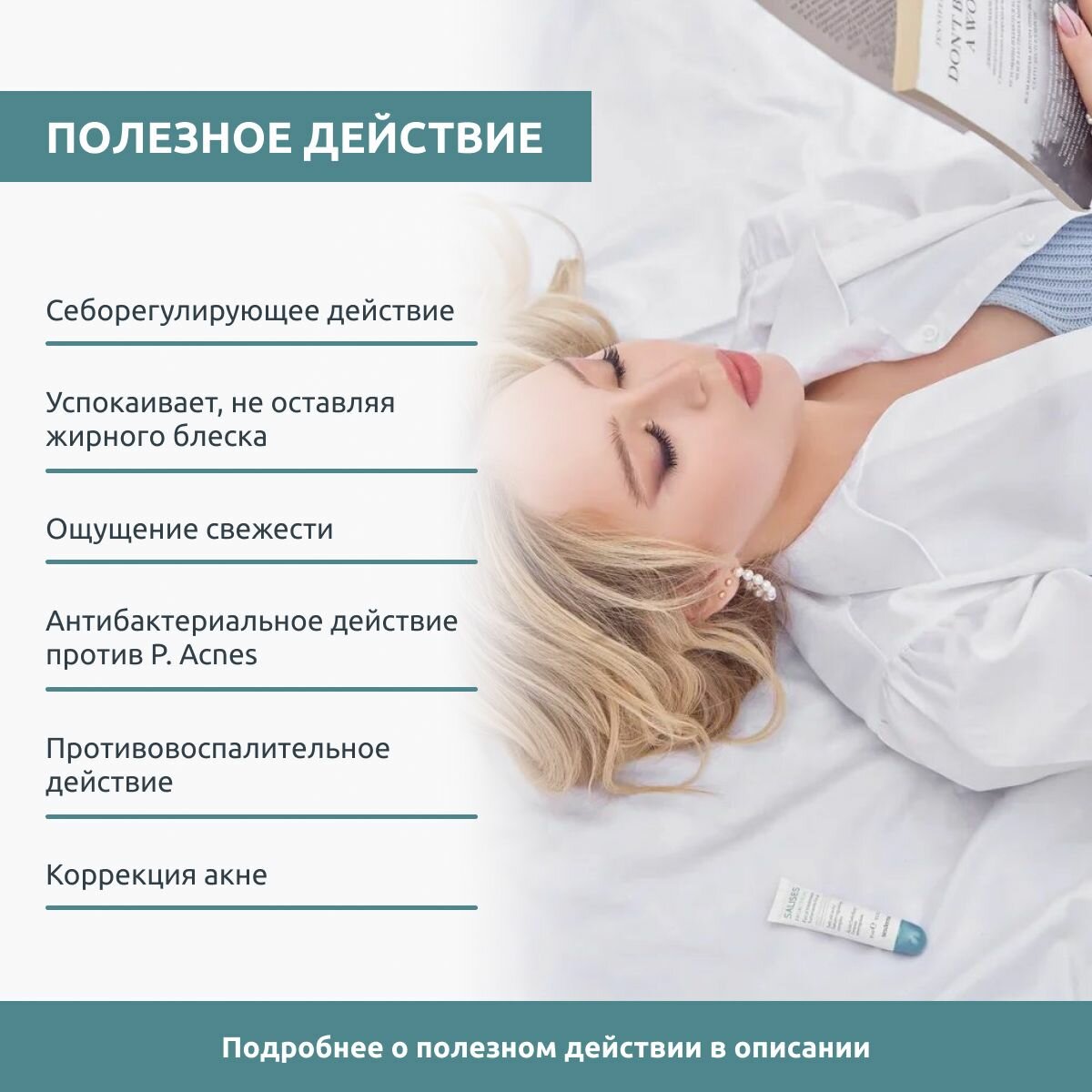 Локальное средство ухода для лица, очищает поры, удаляет угри. Профилактика и терапия для смешанной/жирной, склонной к акне кожи. Применяется в качестве самостоятельного средства или в комбинации с другими средствами антиакне. Регулирует сальную секрецию, удаляет загрязнения и улучшает состояние высыпаний акне. Является альтернативой наружным антибиотикам. Не обладает фоточувствительностью и раздражающим действием.