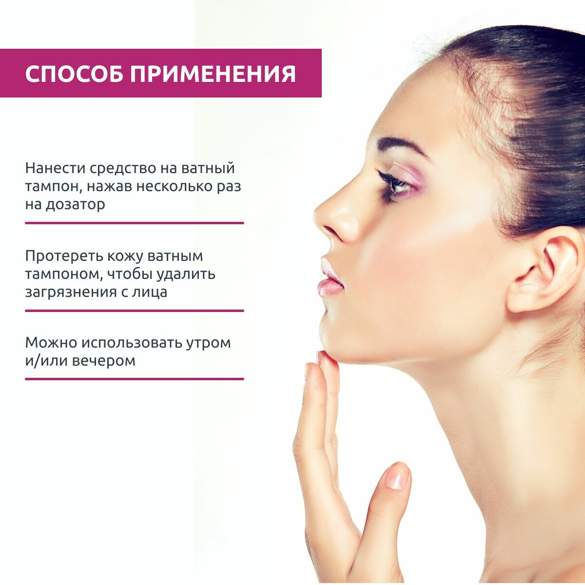 | Способ применения | Нанести средство на ватный тампон, нажав несколько раз на дозатор. Протереть кожу, чтобы удалить загрязнения с лица. Можно использовать утром и/или вечером. |