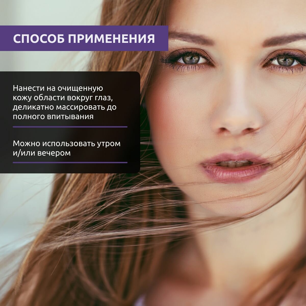 | Способ применения | Нанести на очищенную кожу области вокруг глаз, деликатно массировать до полного впитывания. Можно использовать утром и/или вечером. |