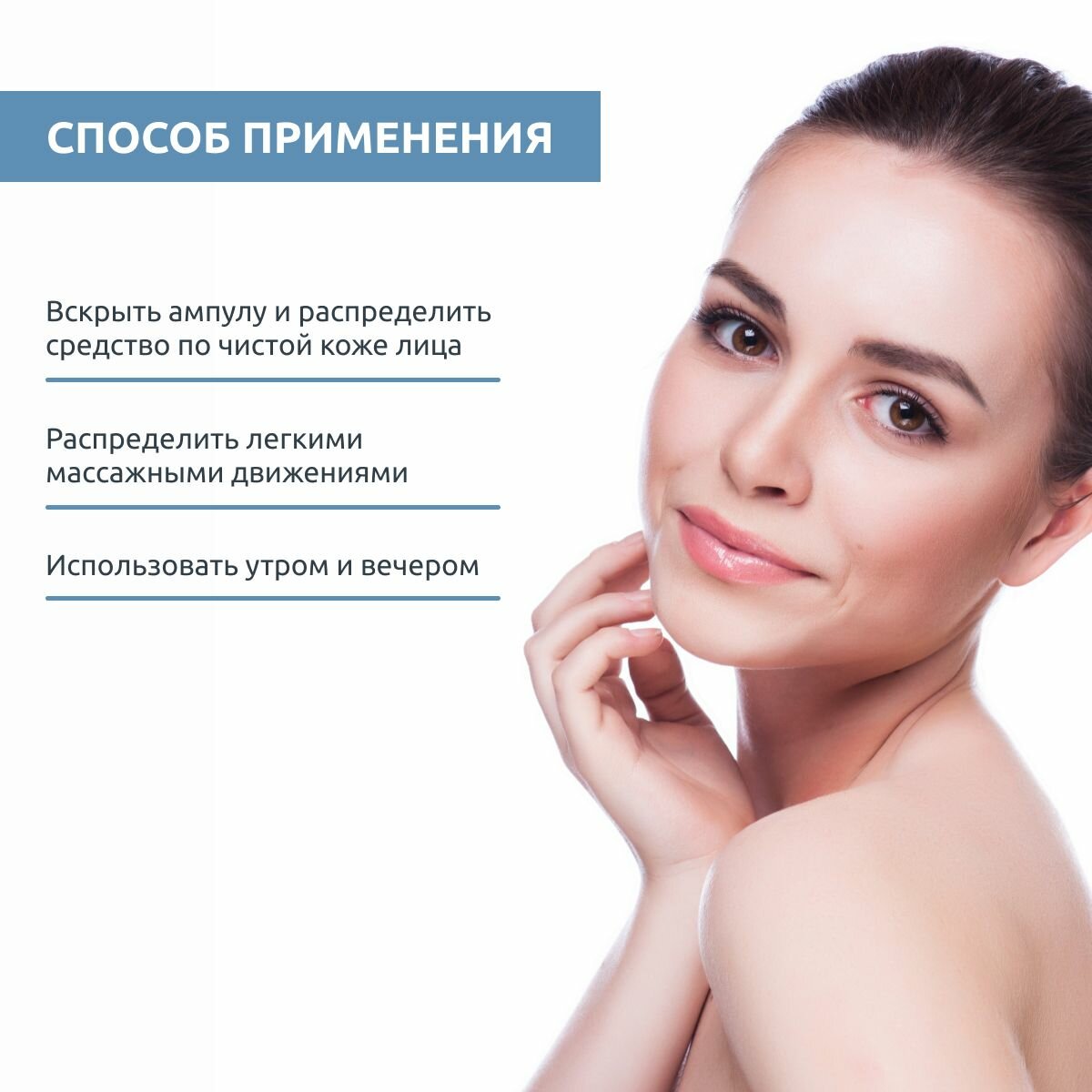 | Способ применения | Содержимое ампулы распределить на коже лица и втереть мягкими массирующими движениями (утром и вечером). |