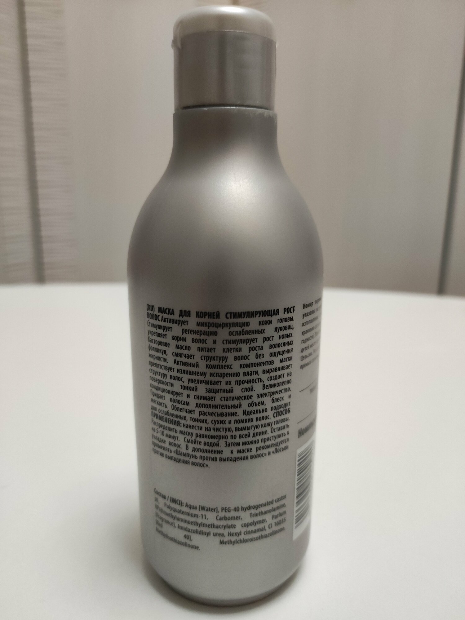 Маска способствует усилению микроциркуляции, притоку лимфы к волосяным луковицам, что обеспечивает их питание и способствует росту густых и сильных волос. При использовании маски в течение месяца Вы заметите, что Ваши волосы стали гуще и плотнее.