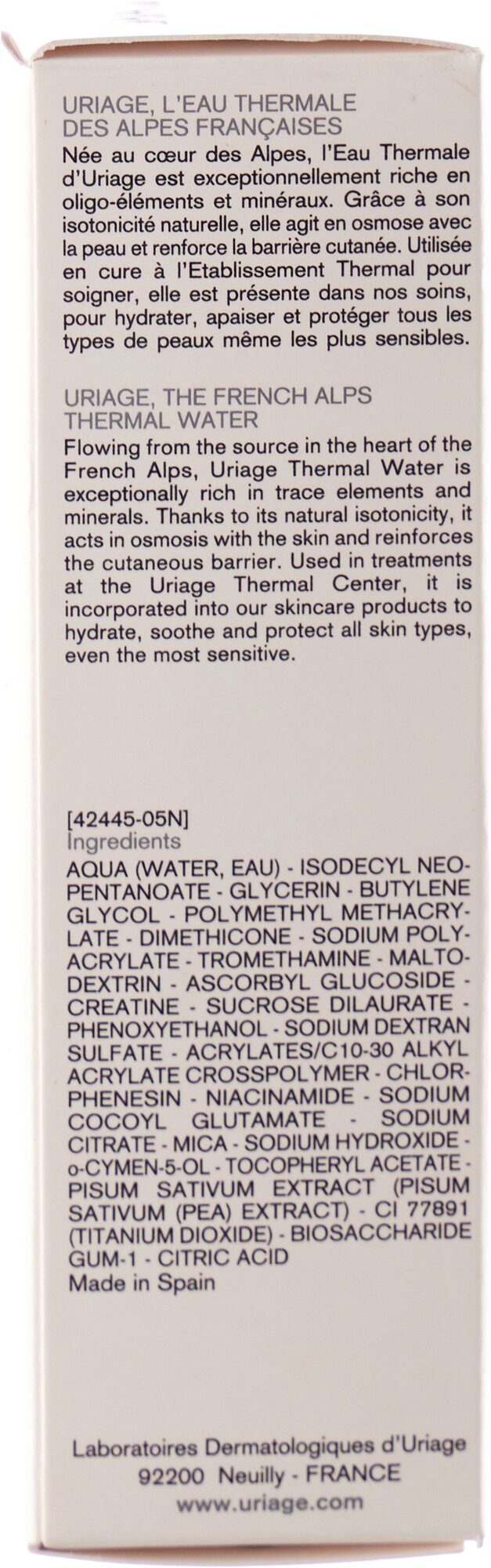 | Состав | Термальная Вода Урьяж, Витамины С и Е, Экстракт Горошка, Сахароза, Глицерин, Перламутровые частицы, Креатин, Фукогель, Глицерин, Сульфат декстрана |