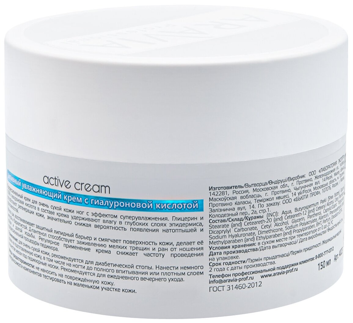 Aravia professional Активный увлажняющий крем с гиалуроновой кислотой "Active Cream" 150 мл (Aravia professional ) (AR4023)