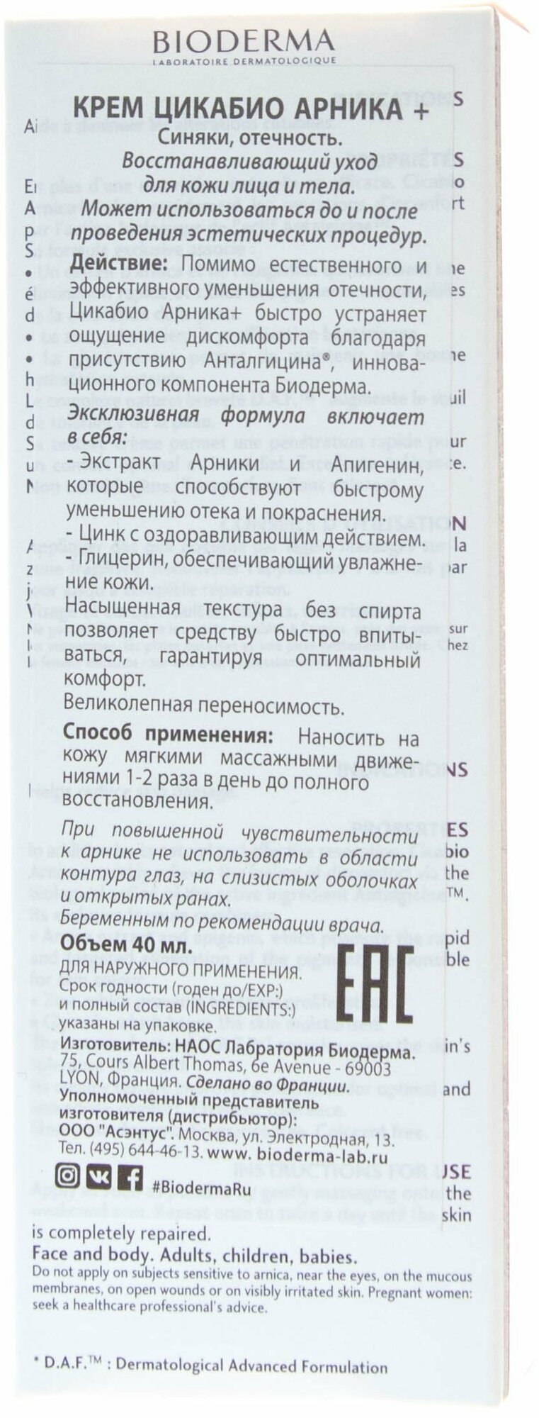 | Коллекция | Bioderma Cicabio Arnica+ |