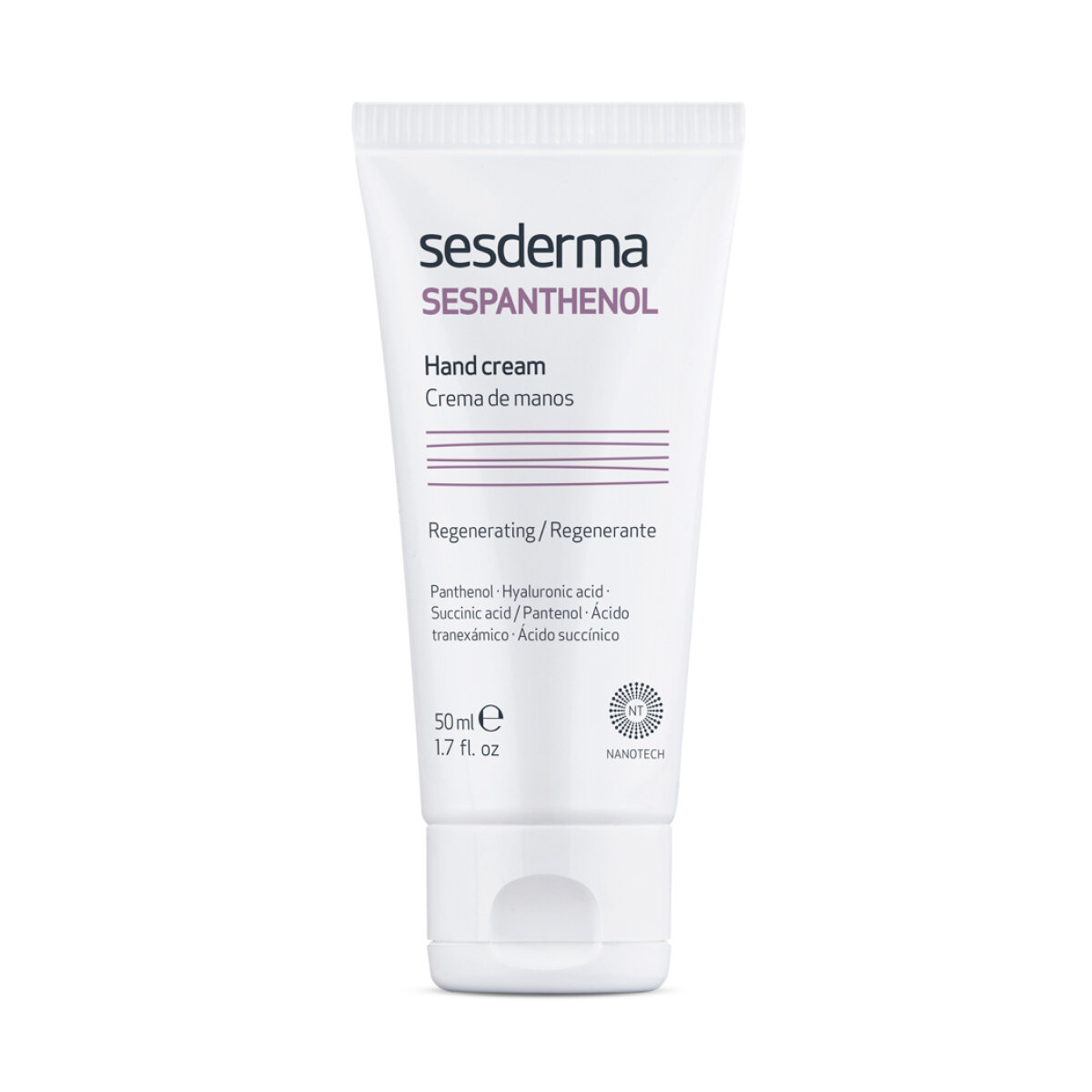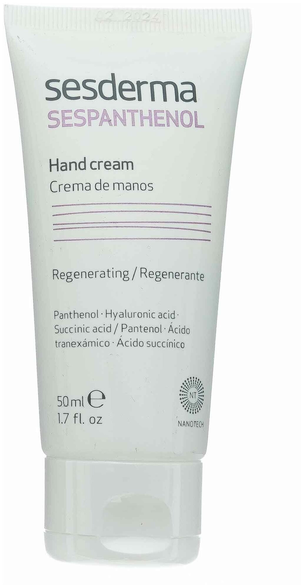 Sesderma Sespanthenol Hand Cream - глубоко увлажняющий и восстанавливающий крем для чувствительных, сухих или поврежденных рук. Это особенно подходит для кожи, которая обычно ослаблена химическими или внешними, связанными с погодой агрессиями. Восстанавливающая формула содержит пантенол, который стимулирует естественную регенерацию кожи, масло авокадо и масло ши, которые усиливают защитную функцию кожи, транексамовая кислота, которая оказывает противовоспалительное действие, успокаивая кожу и снимая ощущения зуда и жжения, и смесь янтарной кислоты и сульфата меди, которые предотвращают инфекцию благодаря своим антибактериальным свойствам.