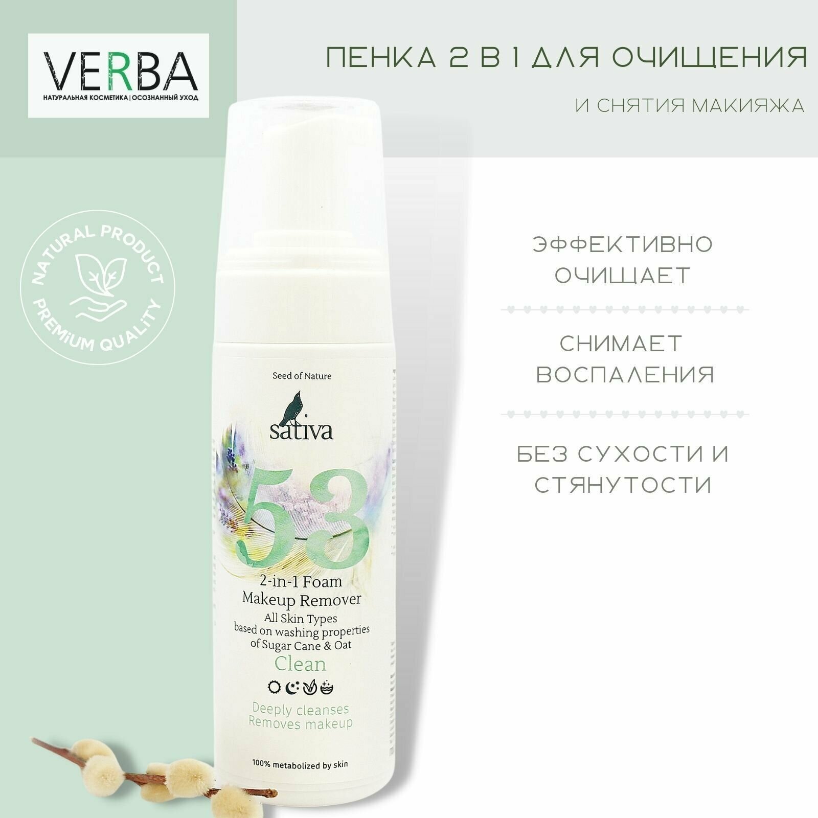 Sativa Пенка 2 в 1 "Для очищения и снятия макияжа № 53" 165 мл (Sativa ) (SATV0036-0165)