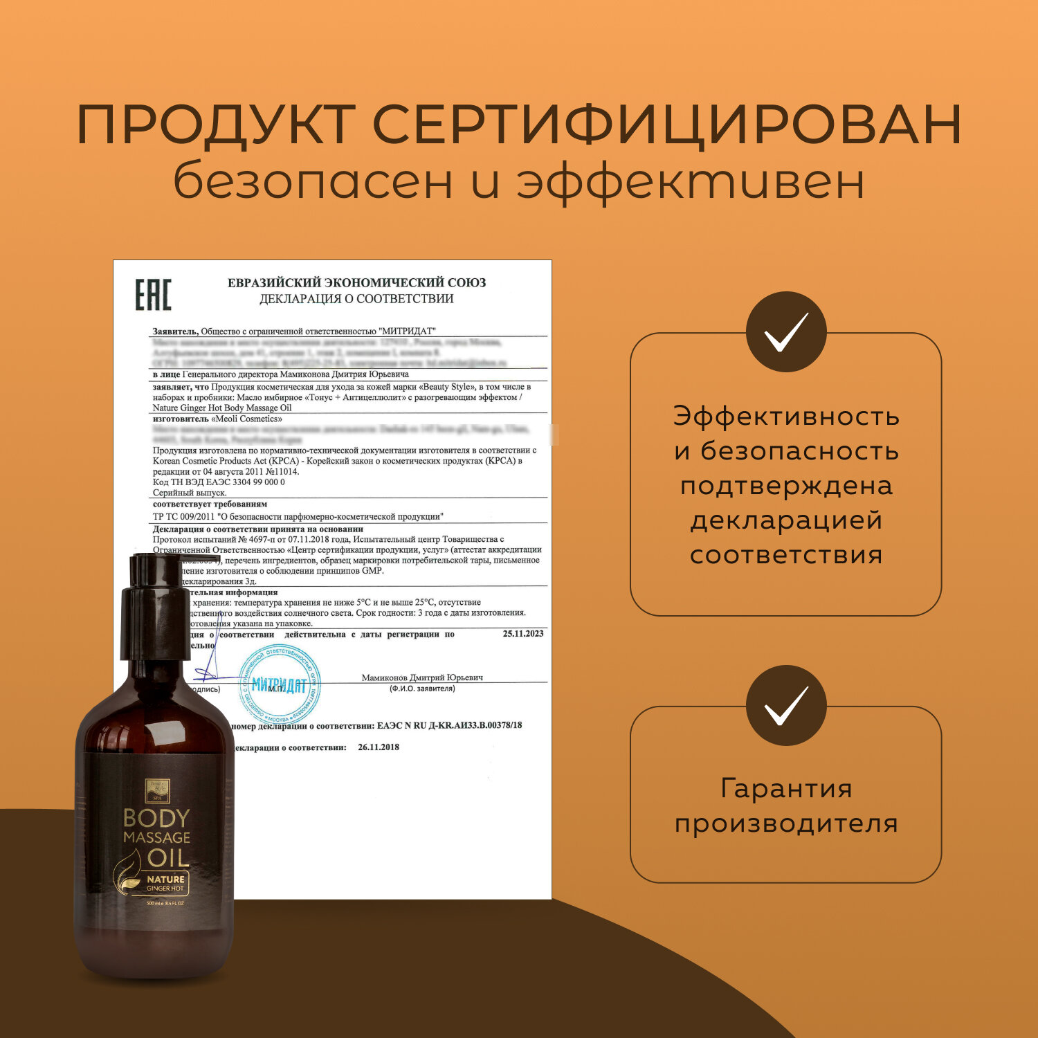 | Полное наименование | Масло имбирное Тонус + Антицеллюлит с разогревающим эффектом |