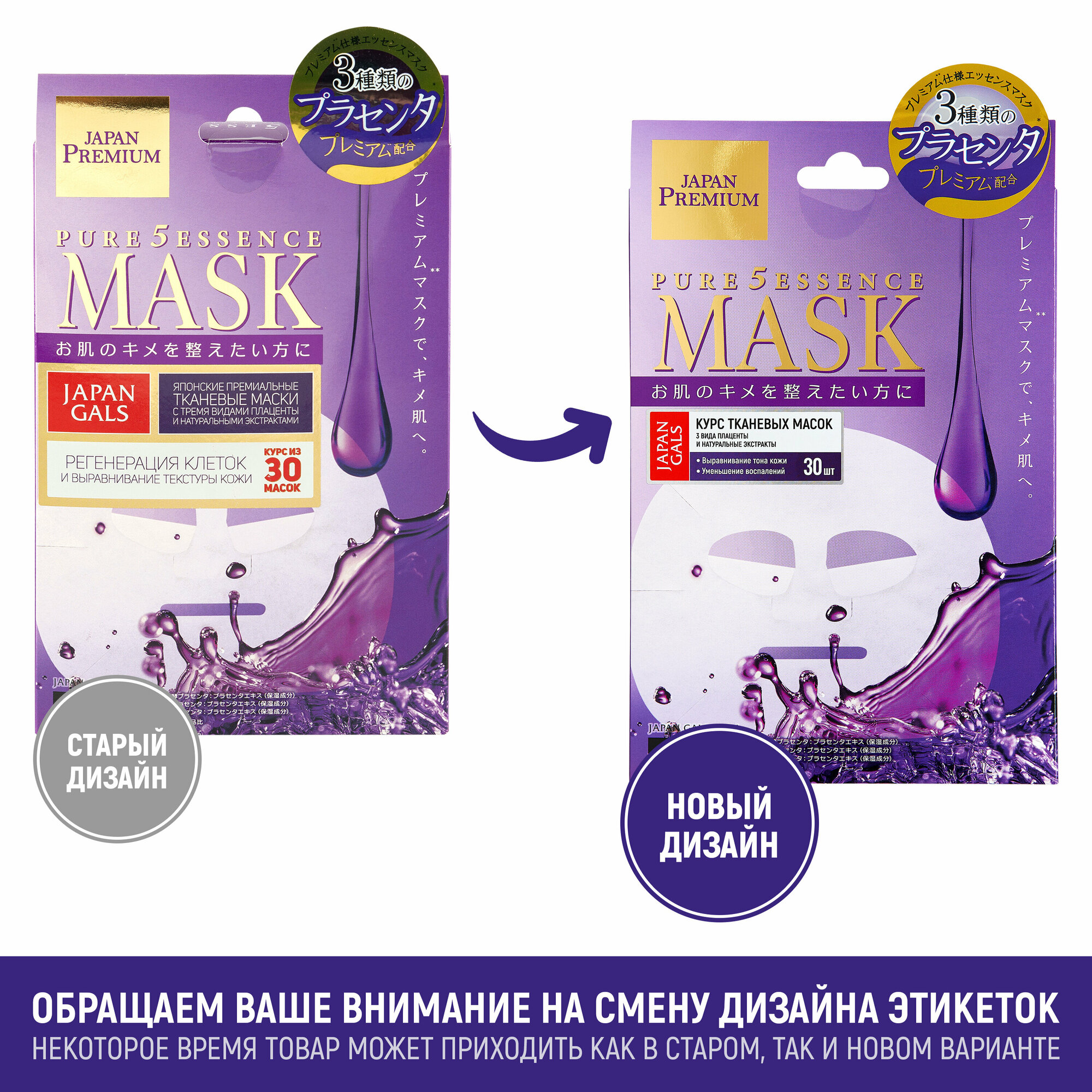 Japan Gals Premium Маска для лица c тремя видами плаценты 30 шт (Japan Gals ) (JG1002)