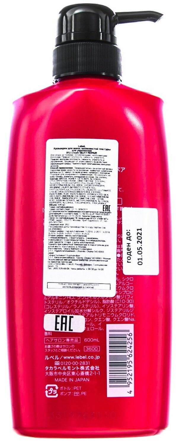 Lebel Аромакрем для волос шелковистой текстуры для укрепления 600 мл (Lebel ) (4256лп)