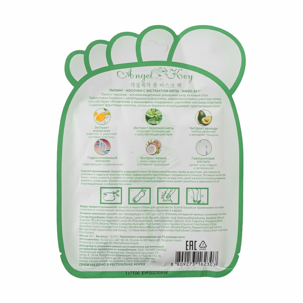 Пилинг-носочки - это инновационный домашний уход за кожей стоп. Эффективно борются с натоптышами и мозолями, шероховатостью и сухостью кожи, способствуют обновлению и заживлению эпидермиса, укрепляют ногтевую пластину.