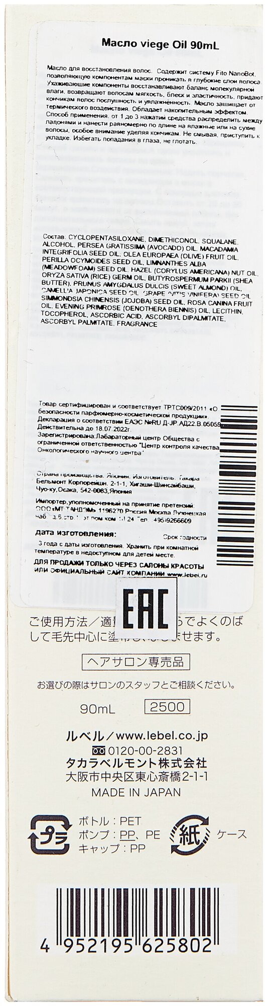 Lebel Масло для восстановления волос Oil 90 мл (Lebel ) Viege Oil