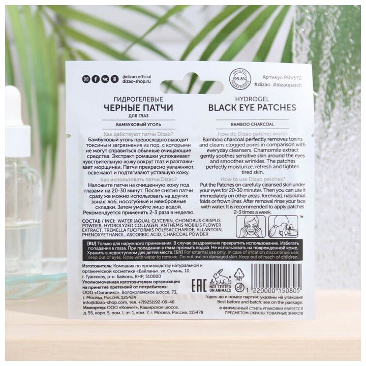 Dizao Гидрогелевые черные патчи для глаз "Бамбуковый уголь" 1 шт (Dizao ) (P50805)