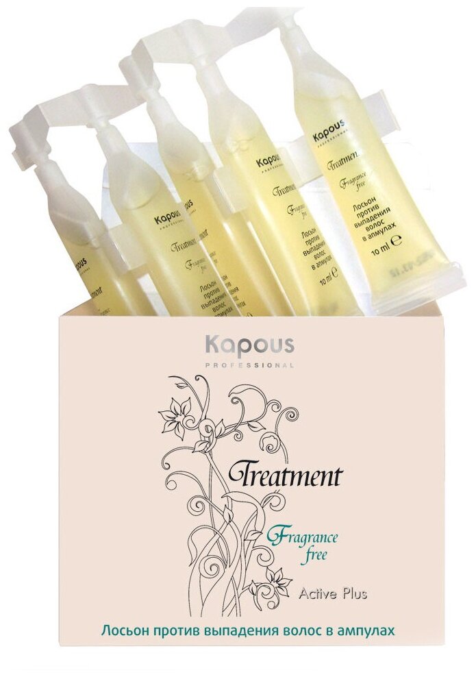 | Применение | предварительно на кожу головы по проборам равномерно нанести лосьон Treatment Active Plus, промассировать и оставить действовать в течении 25-30 минут. Затем вымыть волосы шампунем против выпадения. На вымытые, слегка отжатые волосы равномерно нанести лосьон против выпадения серии Treatment, кончиками пальцев втирая его в кожу. Лосьон не смывать! |
