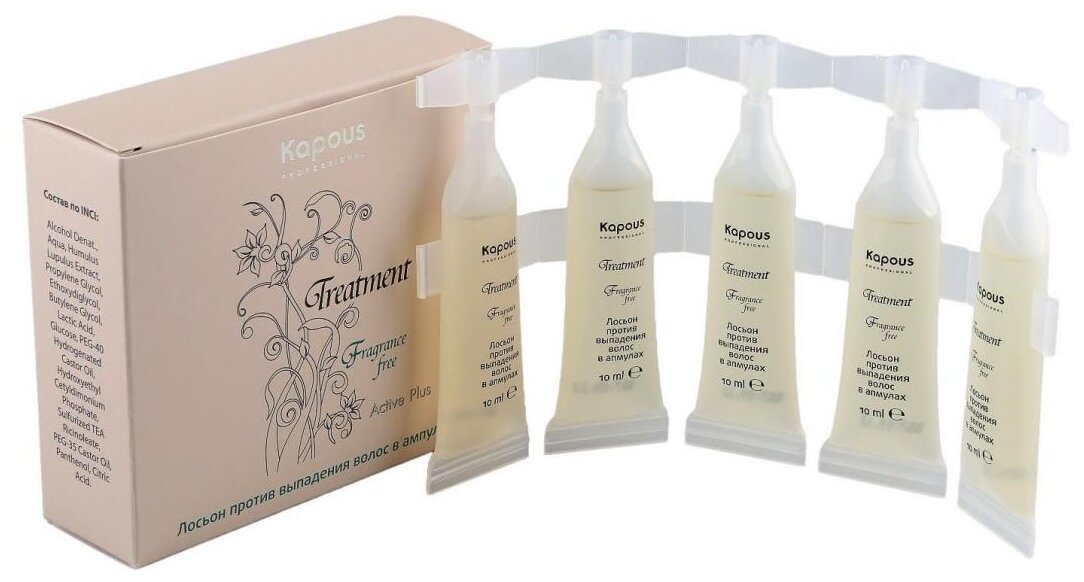 | Полное описание | Лосьон в ампулах Kapous Treatment Active Plus с повышенным содержанием экстракта хмеля и Провитамина В-5 эффективно останавливает чрезмерное выпадение волос, нормализует обмен, усиливает микроциркуляцию крови кожи головы, что обеспечивает интенсивное питание растущих волос. Сохраняет волосы здоровыми и эластичными. Применение лосьона Treatment Active Plus прекращает выпадение волос и обеспечивает рост новых здоровых волос. |