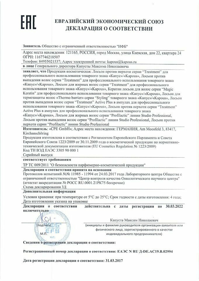 | Фирма-производитель | LLC «Kapous Cosmetics» |