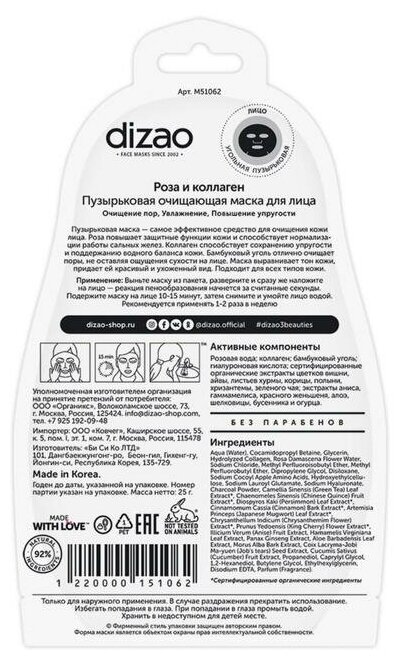 Dizao Пузырьковая очищающая маска для лица 1 шт (Dizao ) (DZ151062)