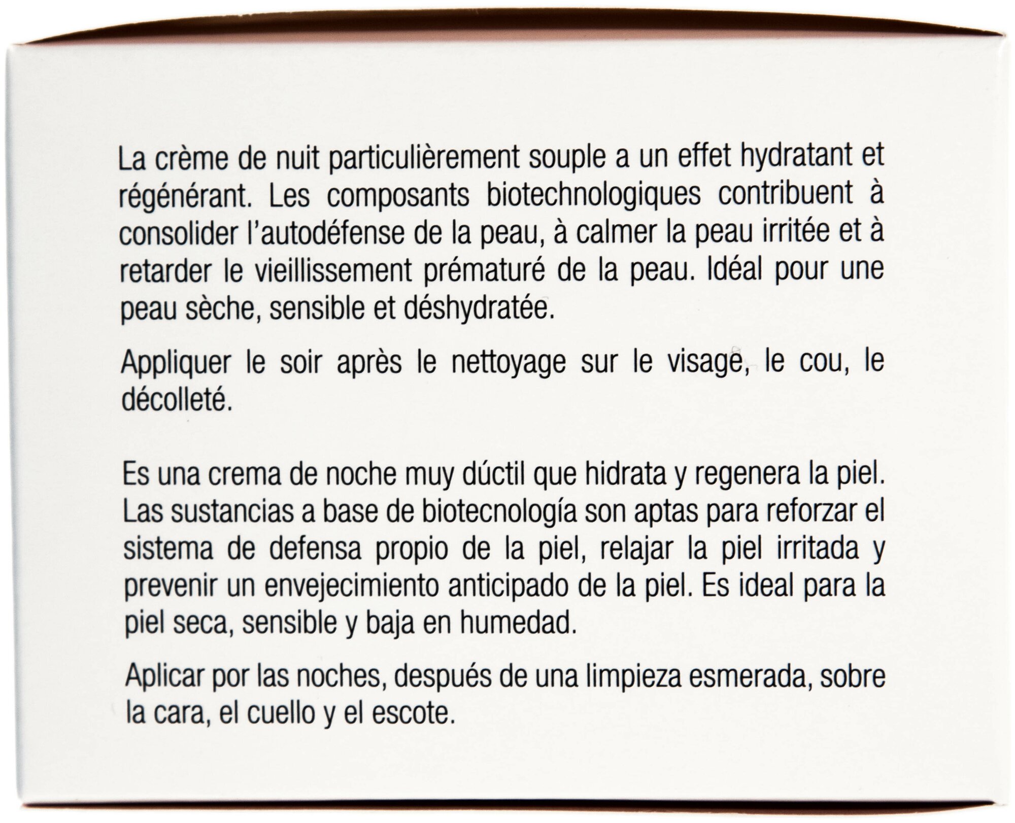Насыщенный плотный крем с супероксиддисмутазой, тепреноном, маслами и увлажняющими компонентами для ухода за склонной к сухости и обезвоженной неправильным уходом кожей.