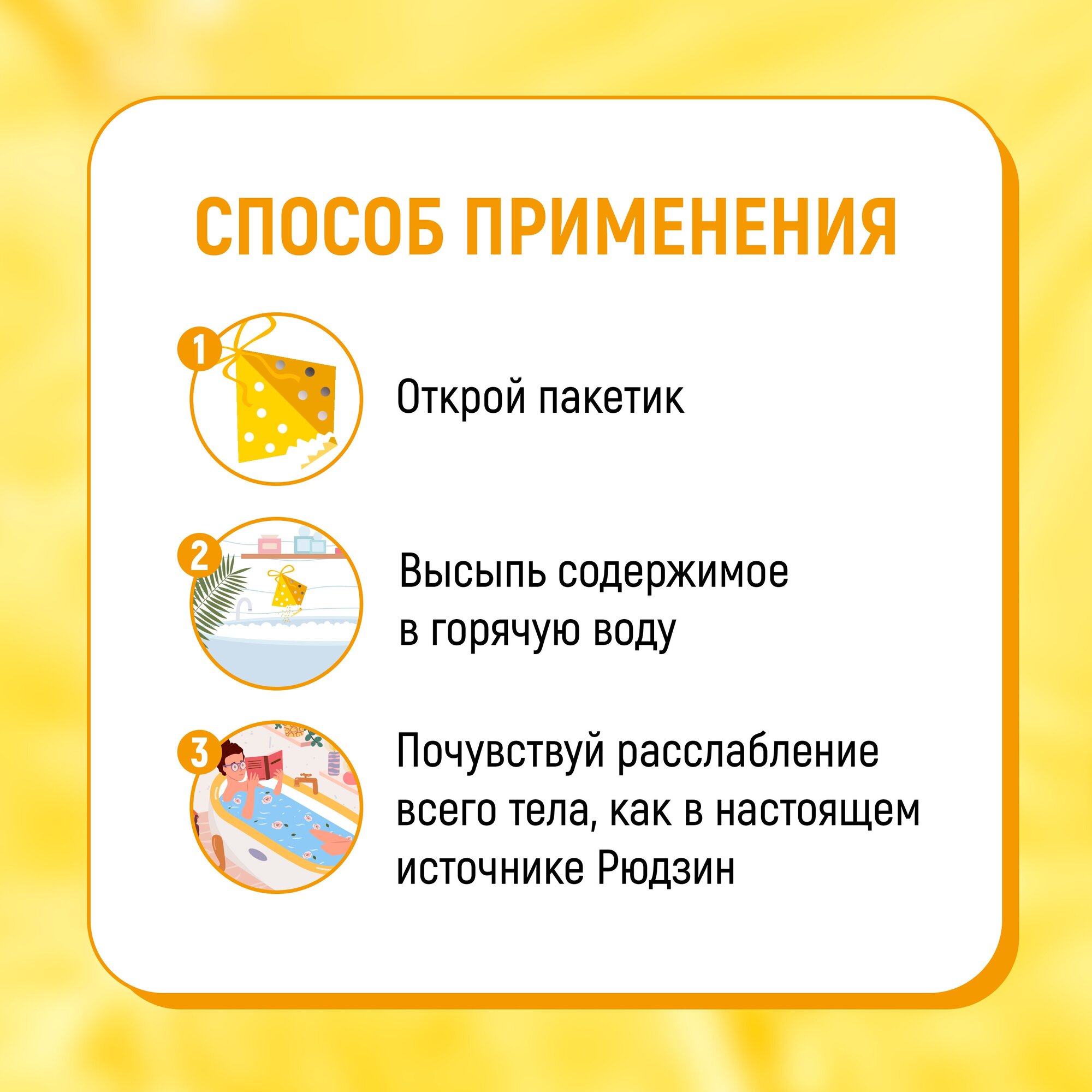 Почувствуй чувство расслабления всего тела, как в настоящем источнике Рюдзин. Нежный аромат диких цветов. Вода приобретает оранжевый оттенок.