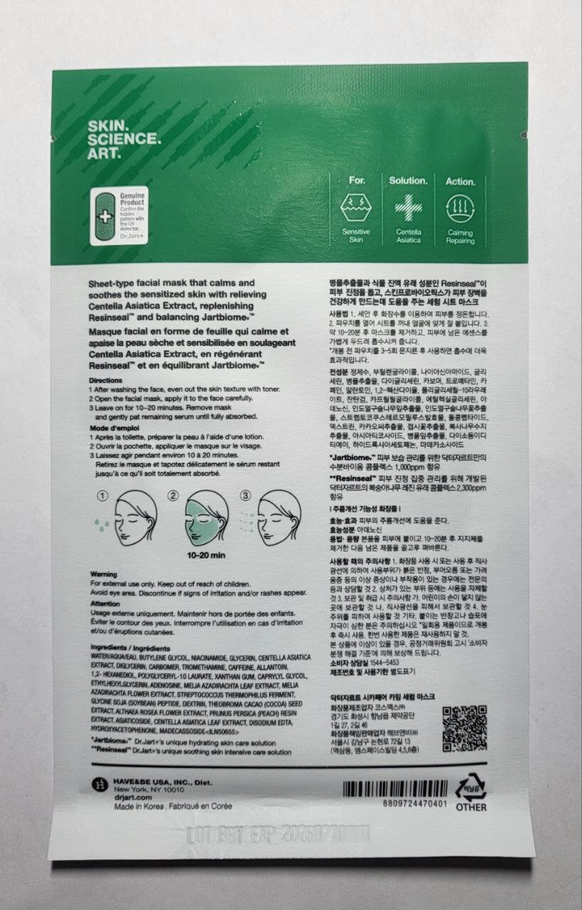 Восстанавливающая и охлаждающая маска для чувствительной и раздраженной кожи. Супер тонкая тканевая маска с мощным комплексом Центеллы Азиатской, который глубоко увлажняет и успокаивает сухую и чувствительную кожу.