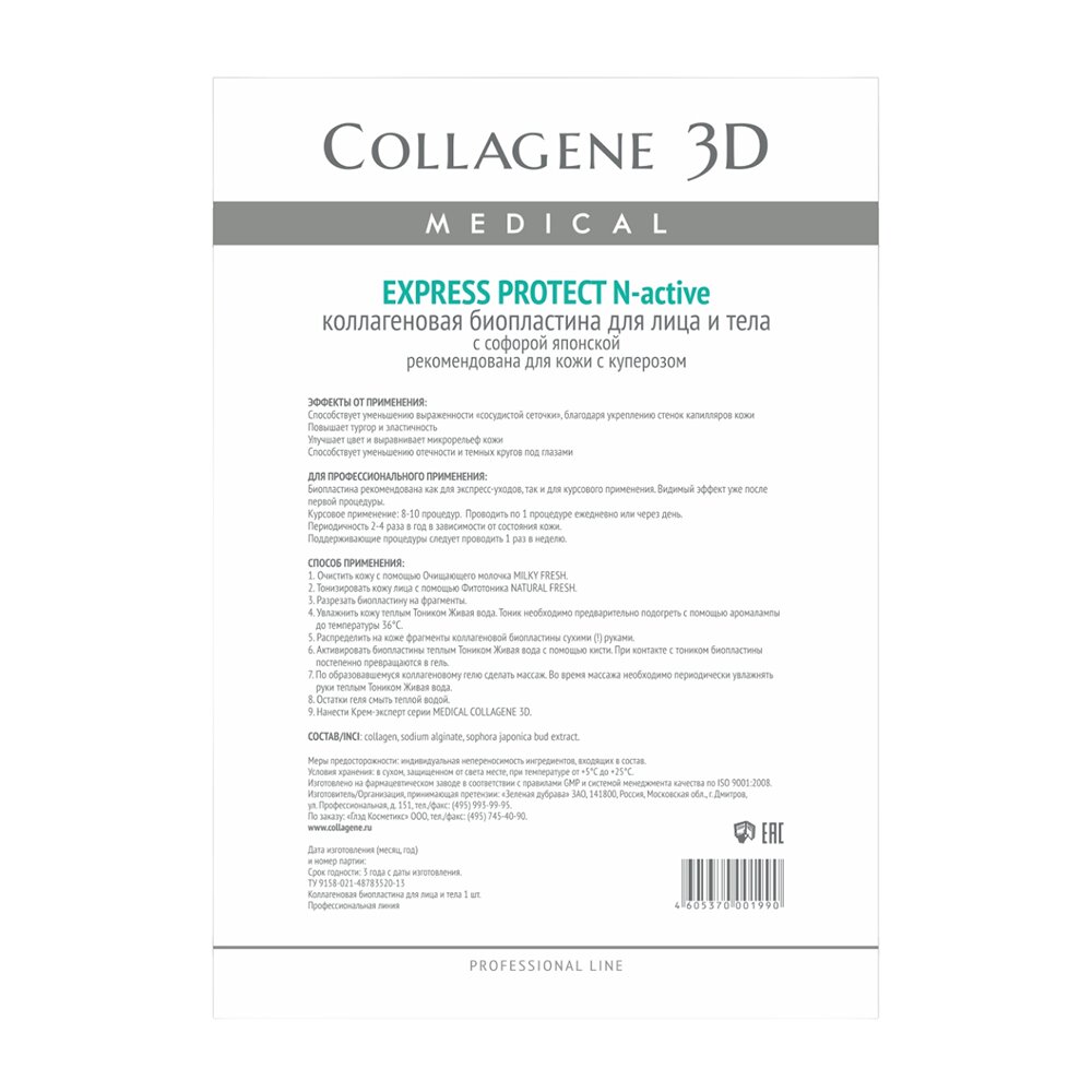 Collagene 3D Биопластины для лица и тела N-актив с софорой японской А4 (Collagene 3D ) (3d24011)
