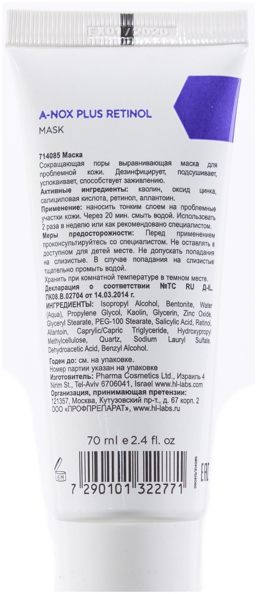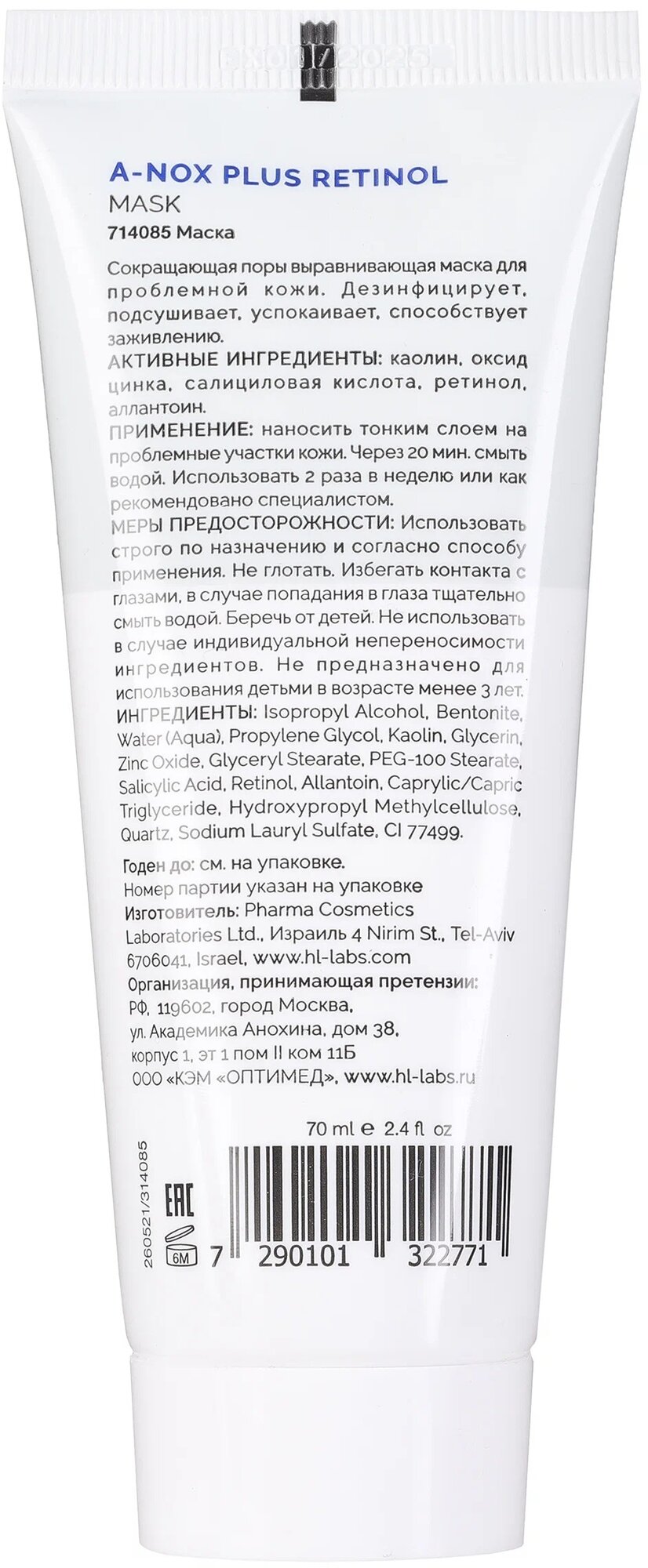Эффективная маска A-nox Plus Retinol – это незаменимый помощник в вашей косметичке. Средство защищает, подсушивает и дезинфицирует поврежденные участки дермы. Стягивает края повреждения, способствует заживлению, уменьшению раздражения и зуда.