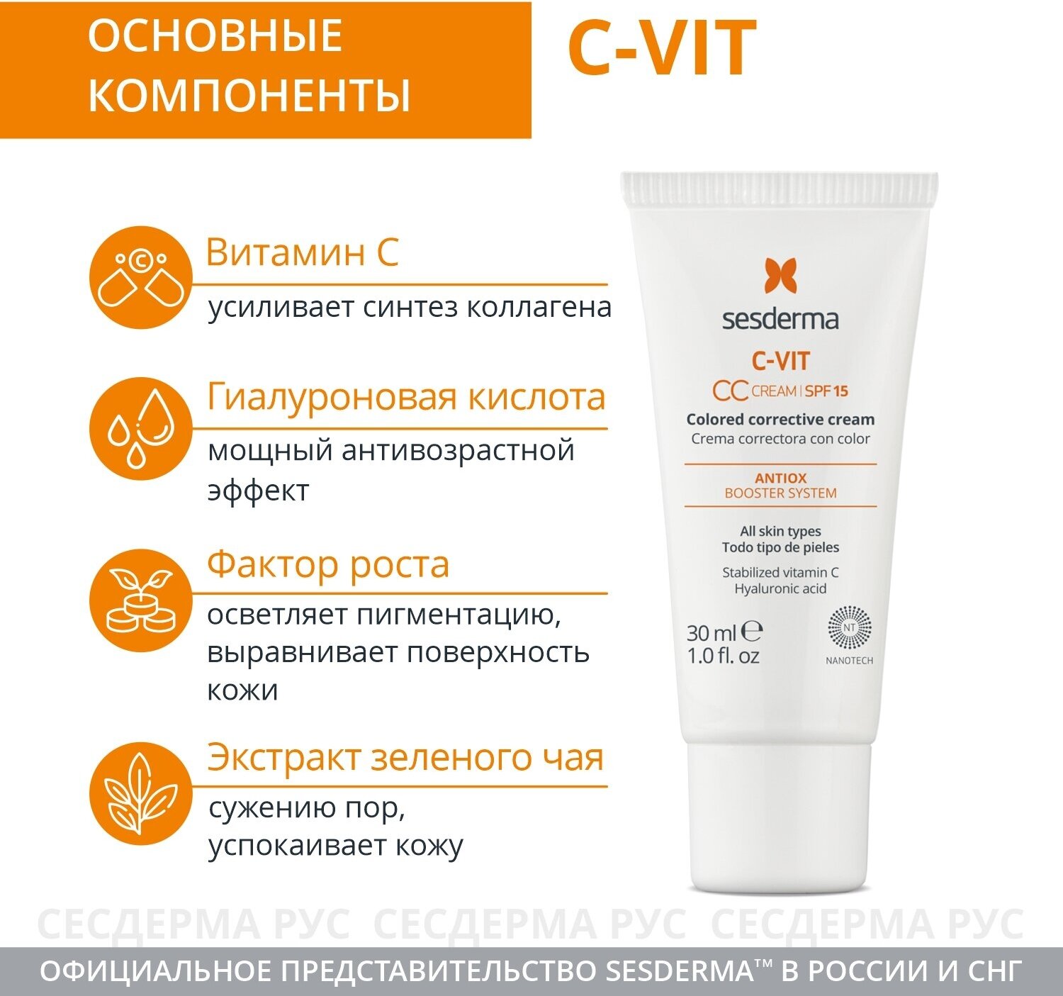 Sesderma Крем корректирующий тон кожи 30 мл (Sesderma ) C-VIT CC Cream SPF 15