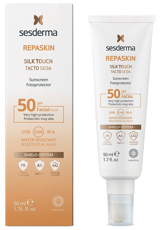 Солнцезащитное средство с нежностью шелка для лица на основе липосомированных компонентов, ферментов, экстрактов зеленого чая и молочного чертополоха матирует кожу, быстро впитывается и не оставляет белых следов. Предотвращает появление признаков фотостарения и повреждения ДНК клеток, восстанавливает кожу, защищает от воздействия ультрафиолета. Средство относится к разряду генной косметики, в его состав входит SHIELD-SYSTEM, которая защищает кожу от фотоповреждений на клеточном уровне.