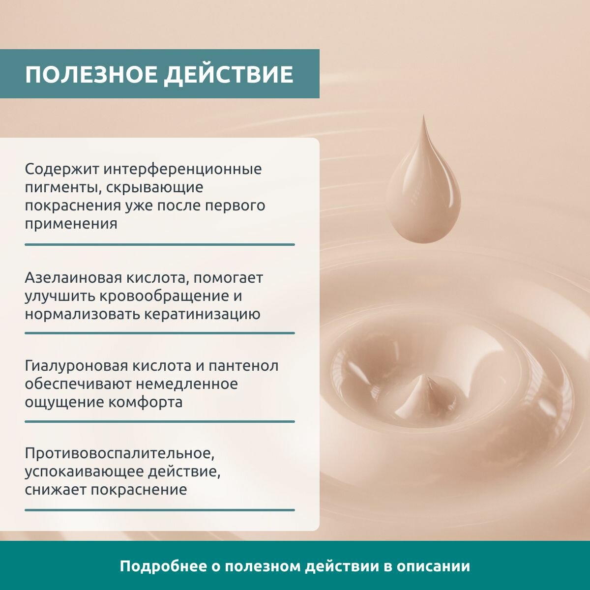 Состав: aqua, tribehenin peg-20 esters, potassium azeloyl diglycinate, propanediol, dimethicone, cetearyl alcohol, glyceryl behenate, titanium dioxide, lecithin, propylene glycol, alcohol, triticum vulgare germ extract, hydrogenated polydecene, silybum marianum extract, azelaic acid, boswellia serrata gum, tranexamic acid, niacin, cetylpyridinium chloride, panthenol, cichorium intybus root extract, melaleuca alternifolia leaf oil, sodium hyaluronate, retinyl palmitate, retinal, phytosphingosine hcl, hydrogenated lecithin, leptospermum scoparium branch/leaf oil, dipropylene glycol, mica, triethanolamine, ammonium acryloyldimethyltaurate/vp copolymer, acrylates/c10-30 alkyl acrylate crosspolymer, xanthan gum, tocopheryl acetate, acrylamide/sodium acryloydimethyltaurate copolymer, polysorbate 20, sodium cholate, c13-14 isoparaffin, sodium hydroxide, sodium chloride, laureth-7, tin oxide, tocopherol, pantolactone, hydrochloric acid, phenoxyethanol, ethylhexylglycerin, potassium sorbate, parfum, linalool, benzyl salicylate, citronellol, benzyl benzoate, farnesol, geraniol, benzyl alcohol.