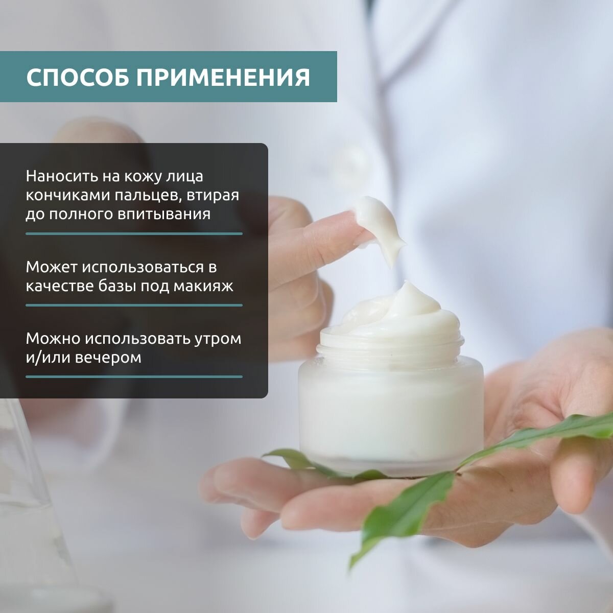 Наносить на кожу лица кончиками пальцев, деликатно втирая до полного впитывания. Может использоваться в качестве базы под макияж. Можно наносить утром и/или вечером.