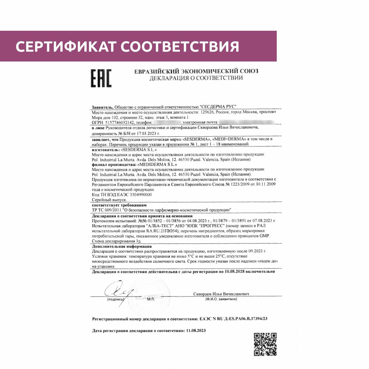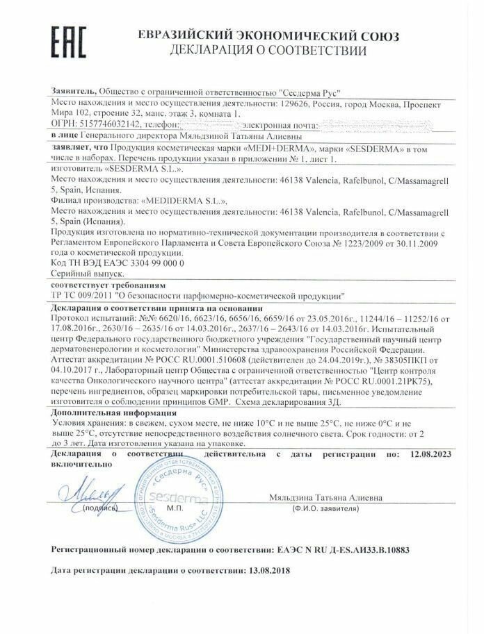 | Фирма-производитель | SESDERMA S.L. |