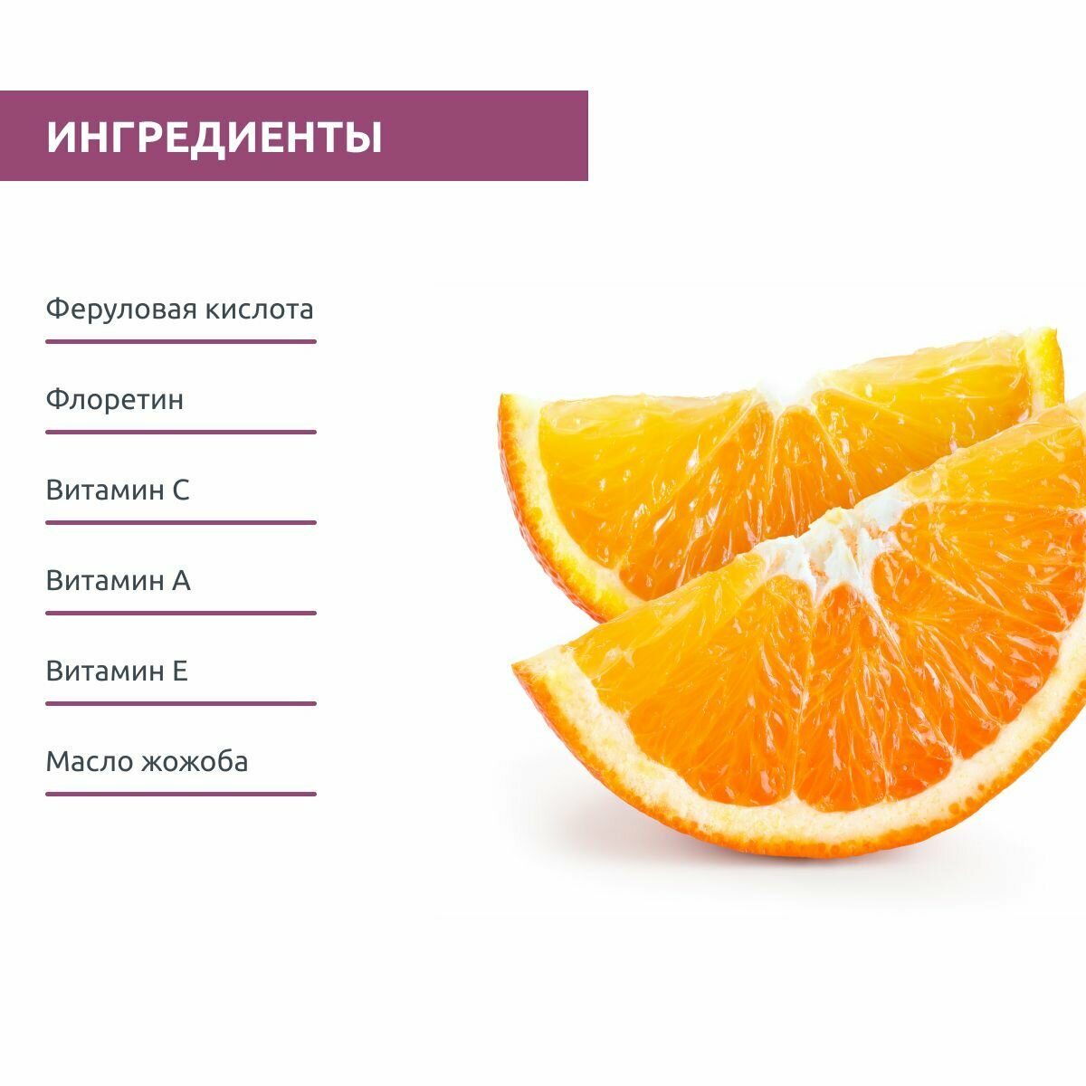 | Состав | Витамин А; Витамин Е; Витамин С; Феруловая кислота; Флоретин |