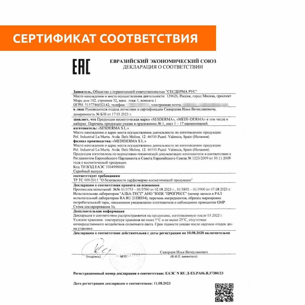 | Фирма-производитель | SESDERMA S.L. |