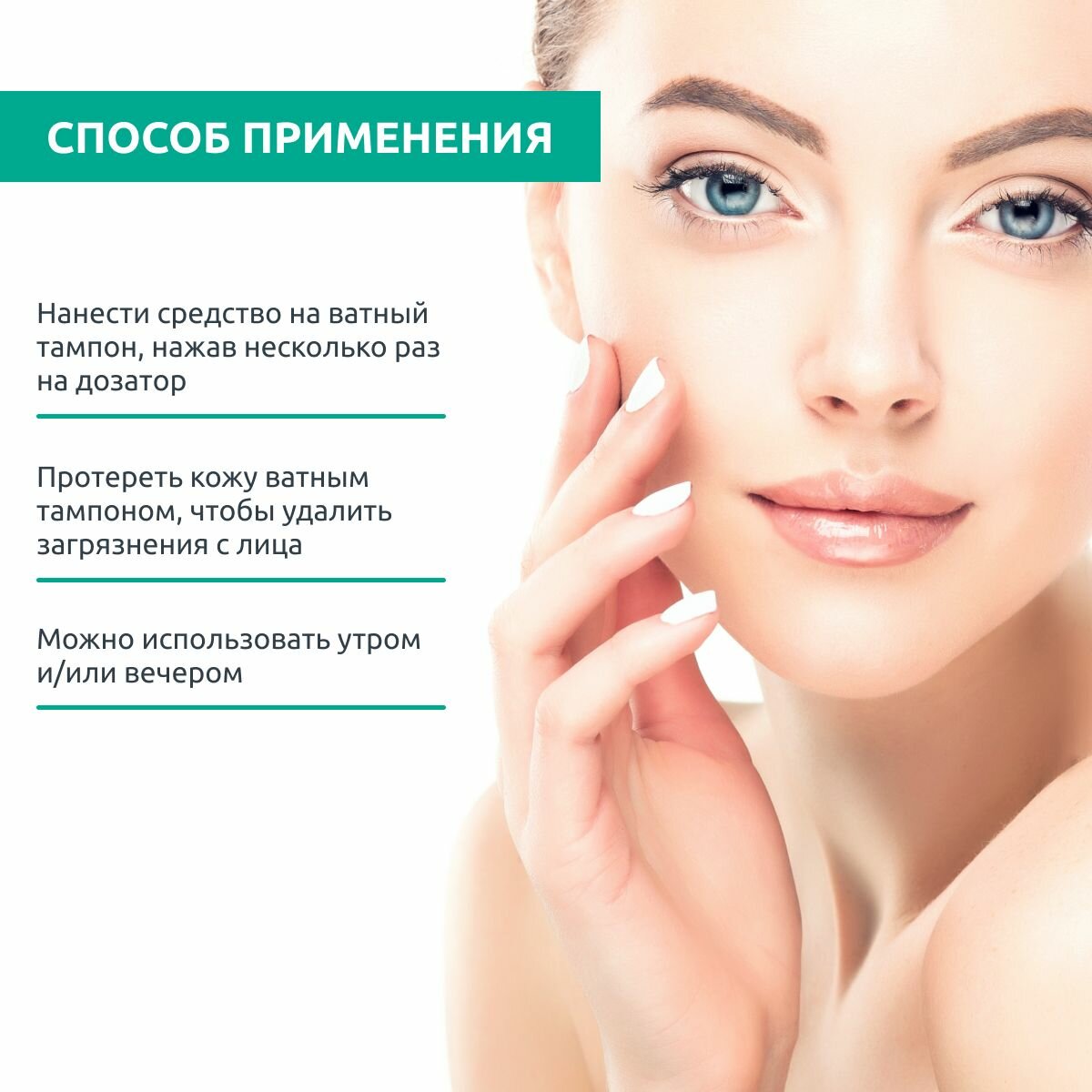 Нанести средство на ватный диск, нажав несколько раз на дозатор. Протереть кожу, чтобы удалить загрязнения с лица. Можно использовать утром и/или вечером.