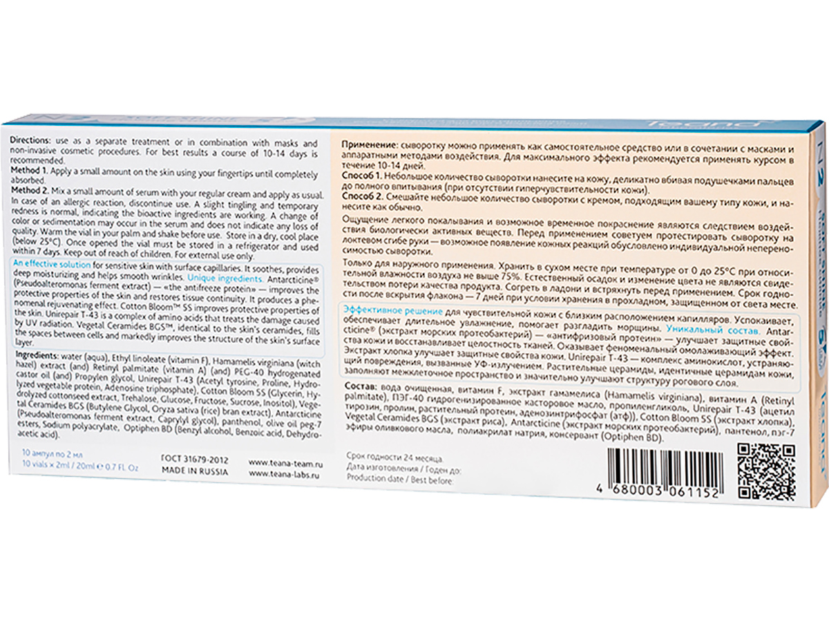 Teana Сыворотка для восстановления естественного защитного барьера кожи N2 "Нежное сияние" 10х2 мл (Teana ) (TEA1030)